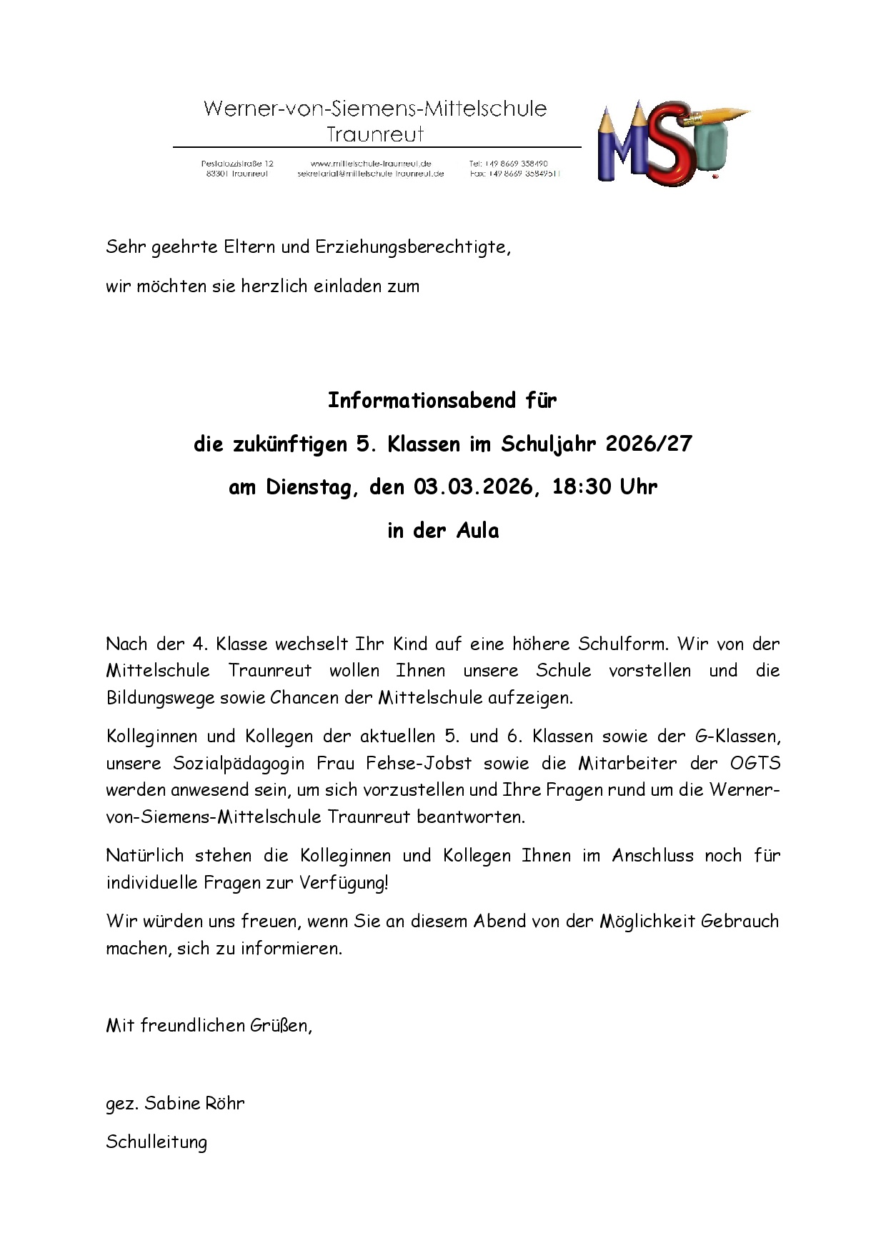 HERZLICH WILLKOMMEN AN DER WERNER-VON-SIEMENS MITTELSCHULE